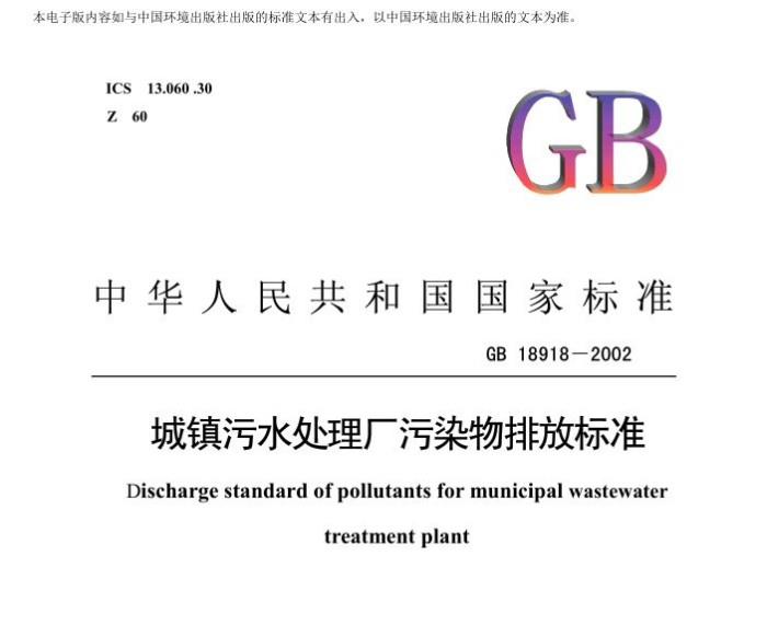 城镇污水处理厂污染物排放标准(GB 18918-2002)