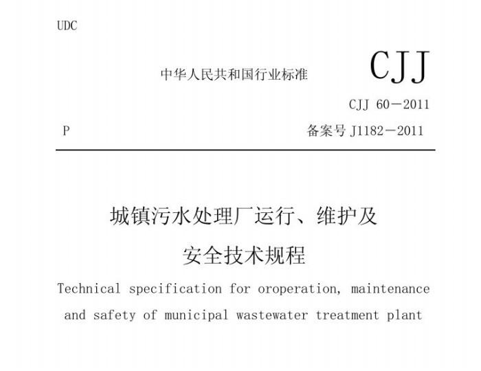 城镇污水处理厂运行、维护及安全技术规程(CJJ60-2011)