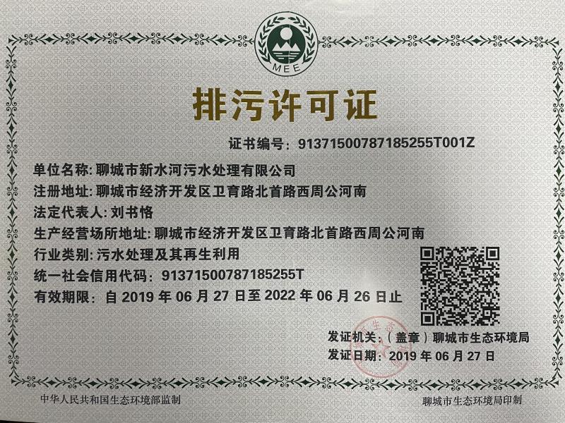 水务污水、新水河污水排污许可证公示