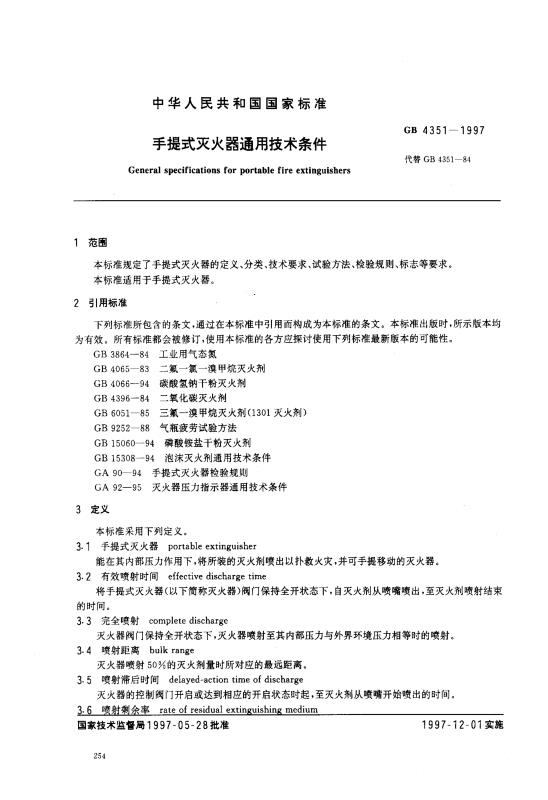 GB4351-1997 手提式灭火器通用技术条件