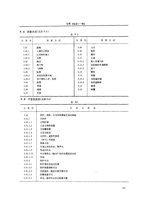 75GB6441-86企业职工伤亡事故分类