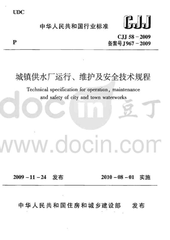 CJJ58-2009城镇供水厂运行、维护及安全技术规程