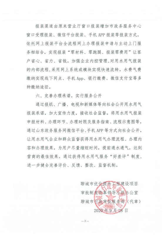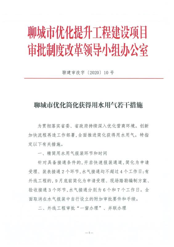 聊城市优化简化获得用水用电若干措施