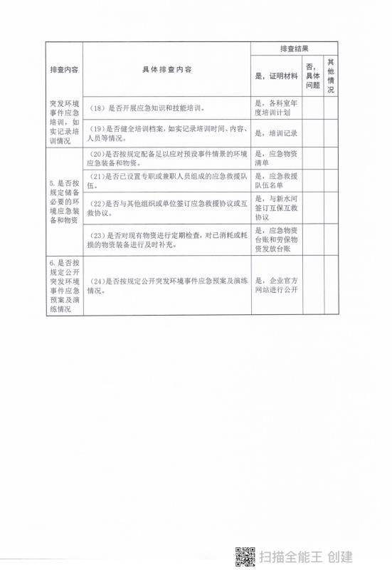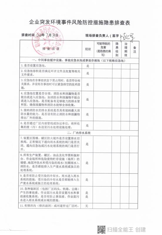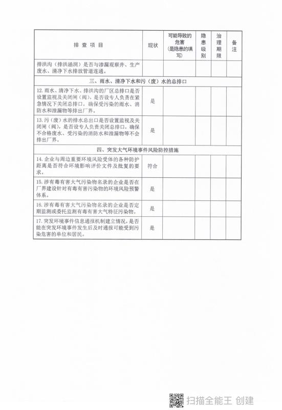 水务污水——企业突发环境事件风险管控措施隐患排查表