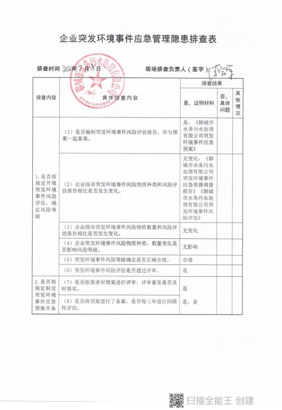 聊城市水务污水处理有限公司突发环境事件应急预案