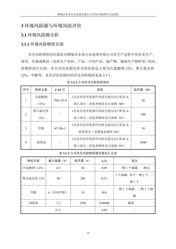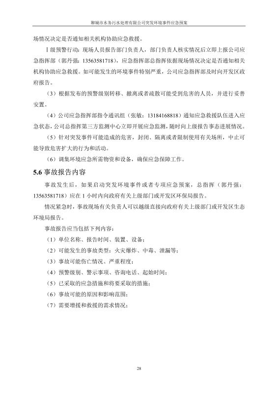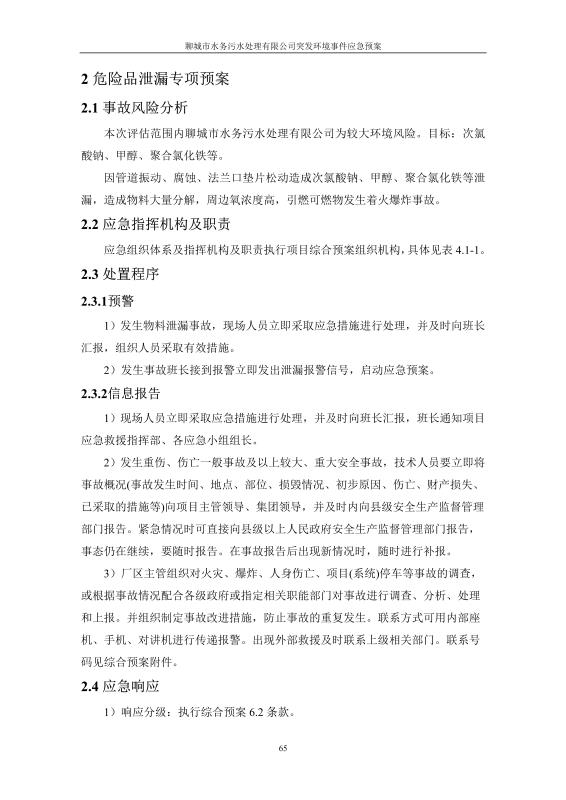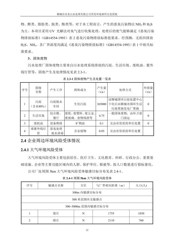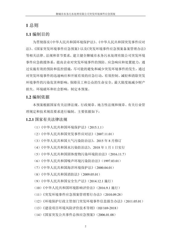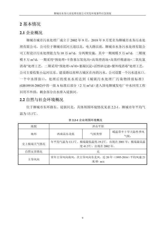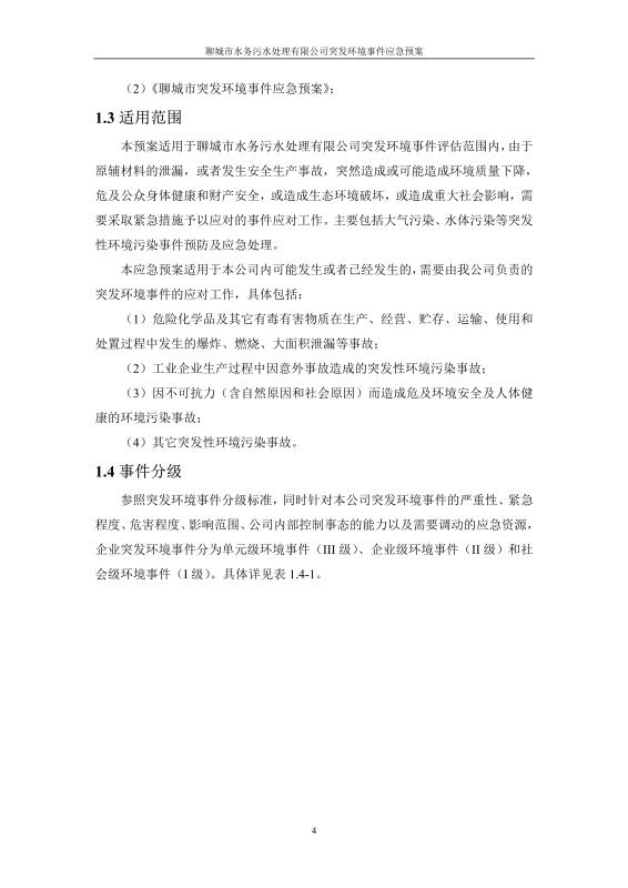 聊城市水务污水处理有限公司突发环境事件应急预案