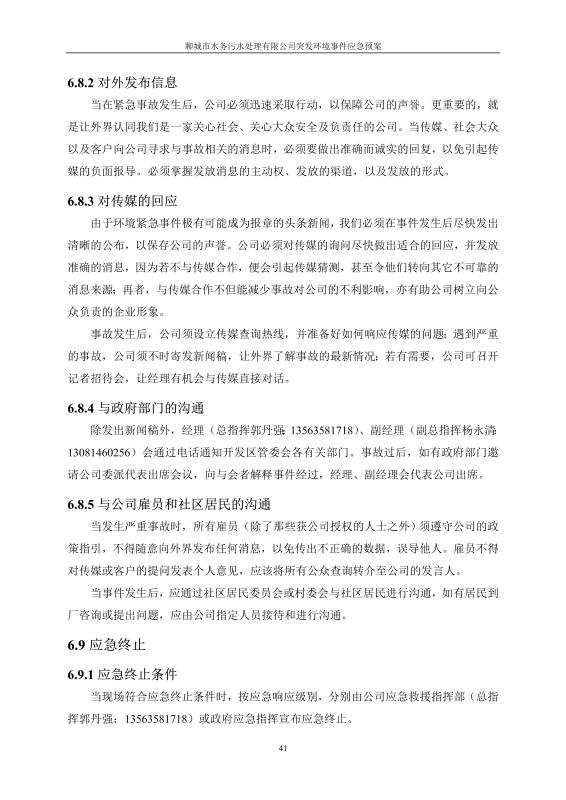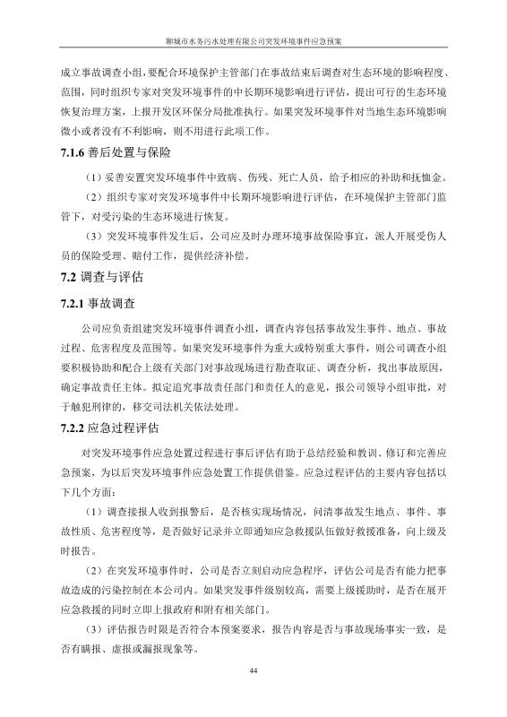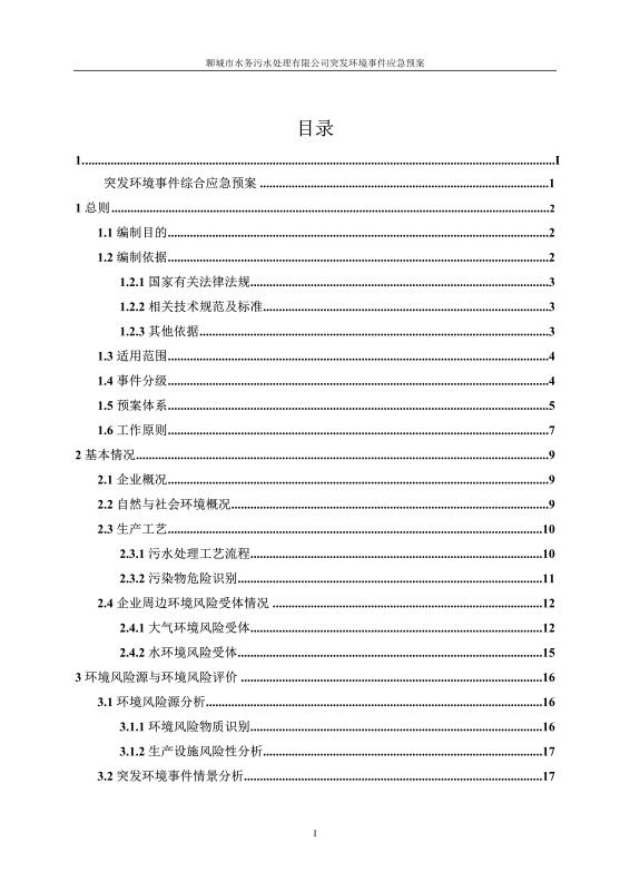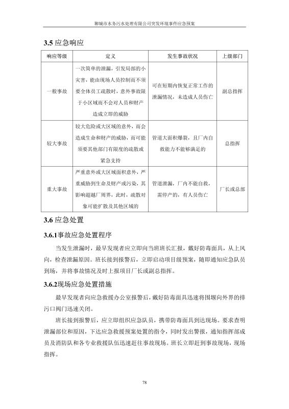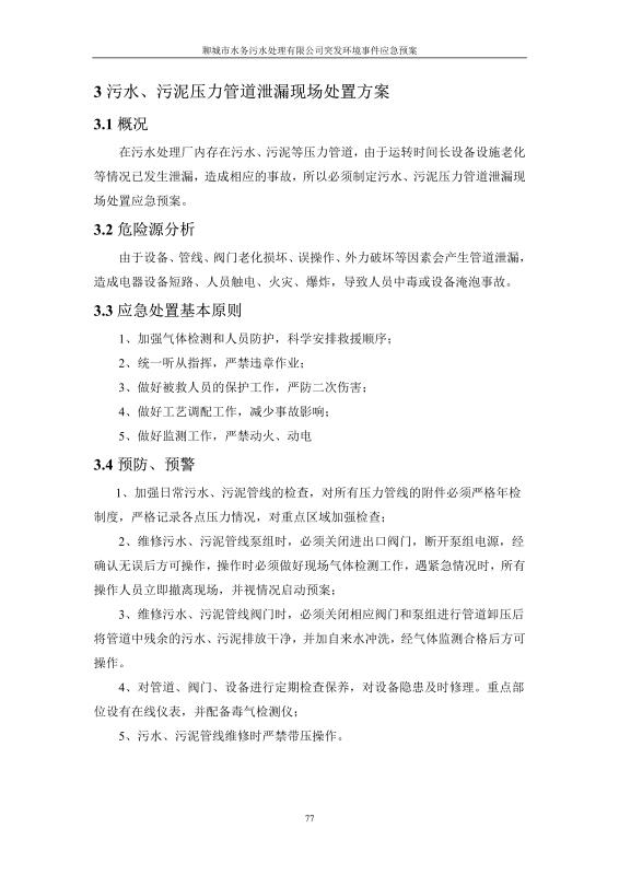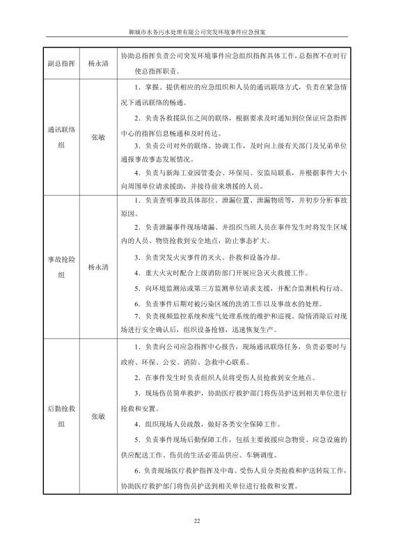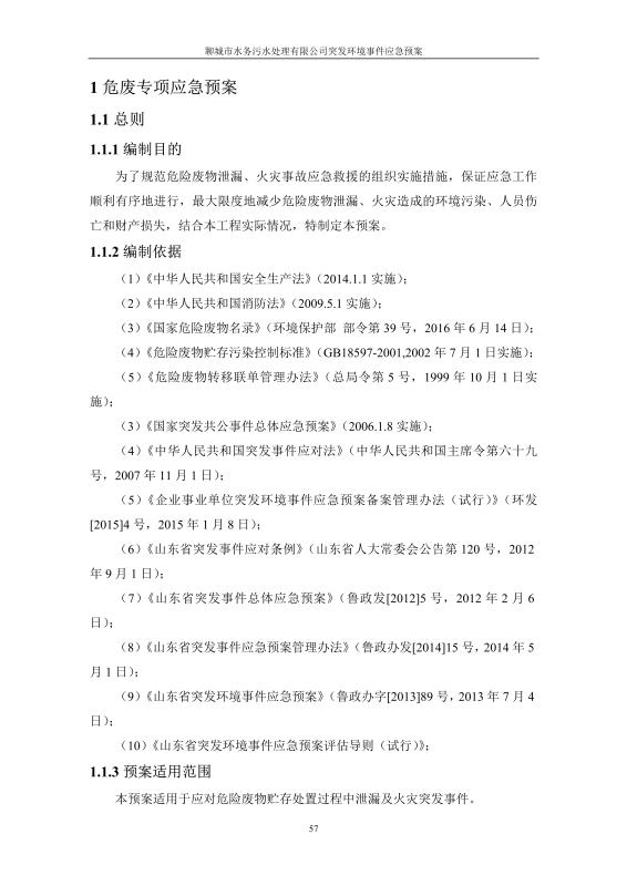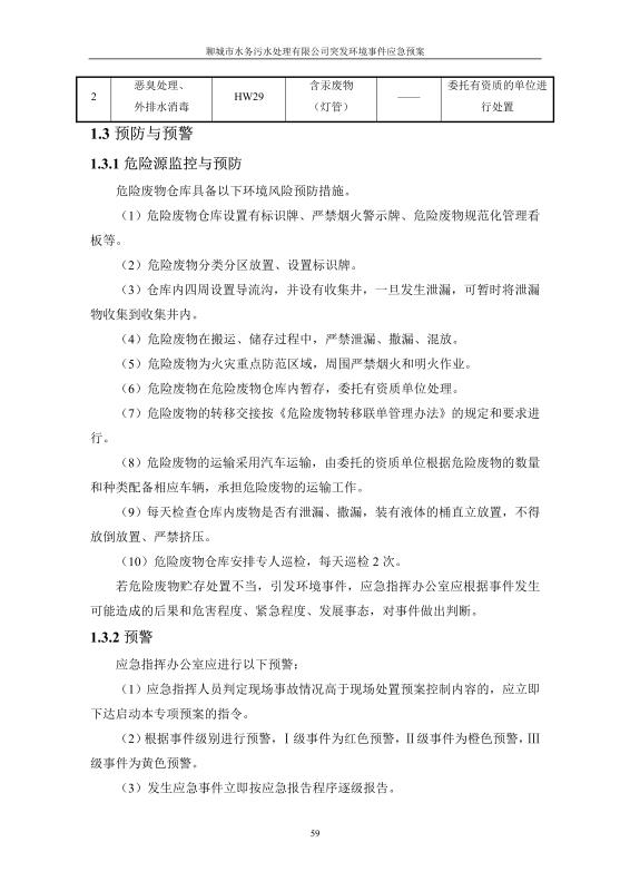 聊城市水务污水处理有限公司突发环境事件应急预案