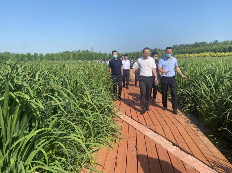7月8日,聊城市委党校副校长刘静一行30余人,来到周公河湿地公园,就黄河流域生态保护和高质量发展专题进行现场调研。山东土发公司执行董事陈金峰、聊城水务集团环科院天地公司经理张兴波陪同调研。