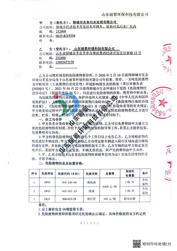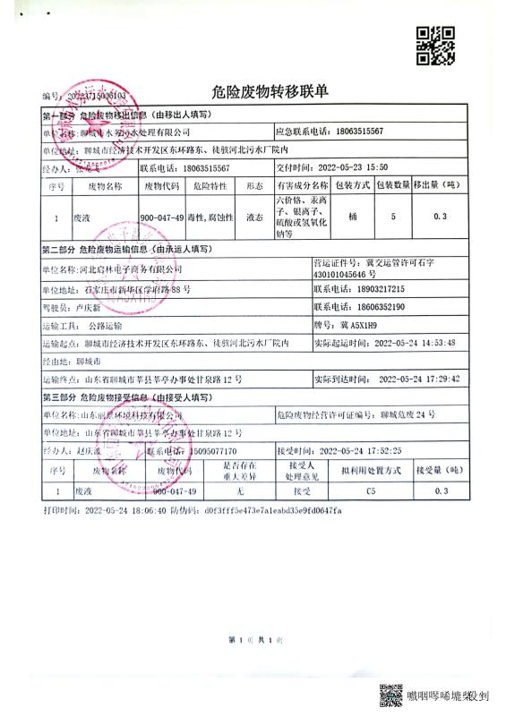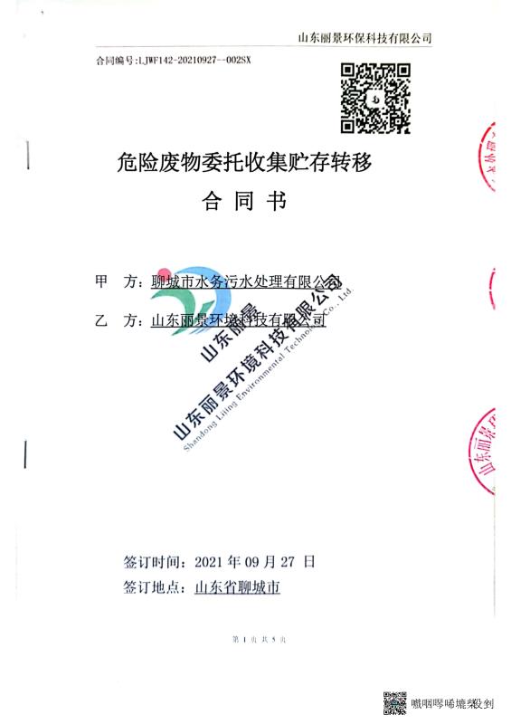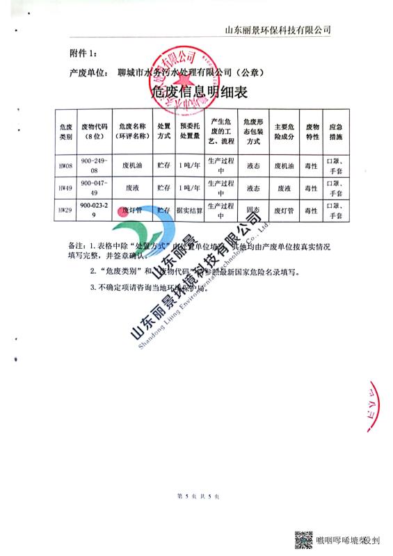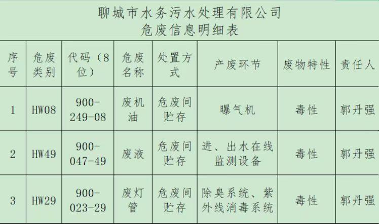 2022年聊城市水务污水处理有限公司上半年度危险废物污染环境防治信息