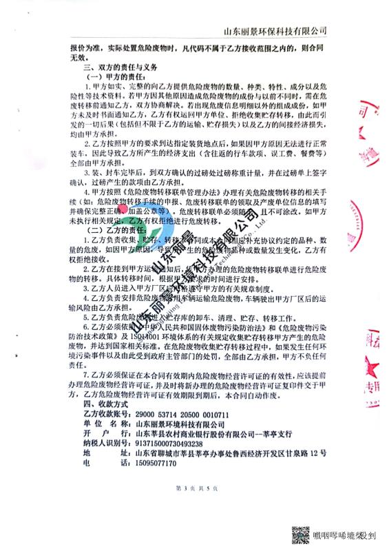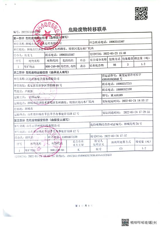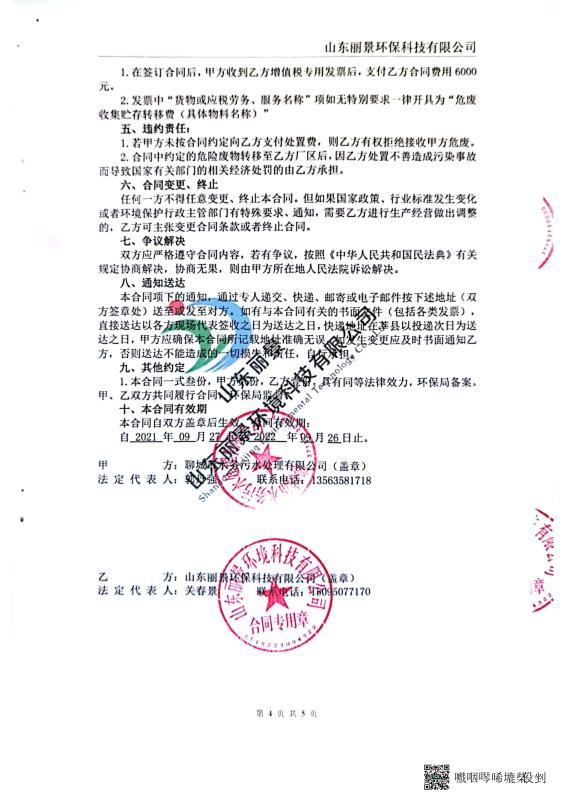 2022年聊城市水务水质检测有限公司上半年度危险废物污染环境防治信息