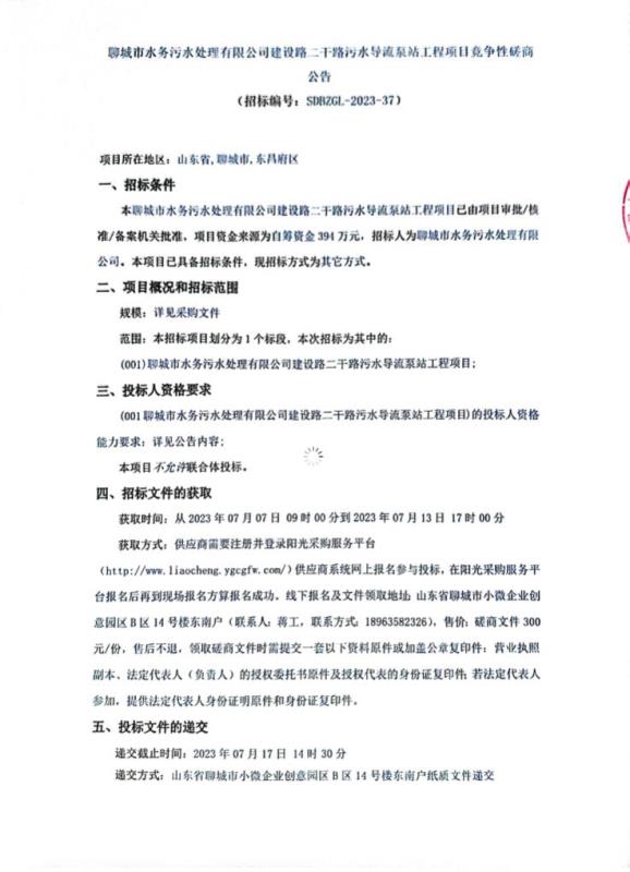 上一篇:聊城水务集团有限公司 2023年度招标代理机构遴选公告