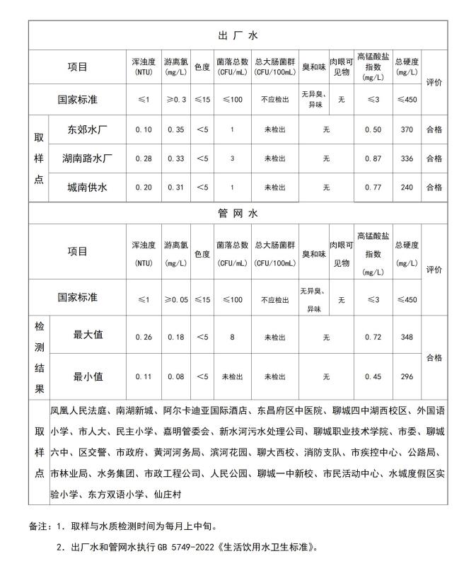 2023年10月水质公告