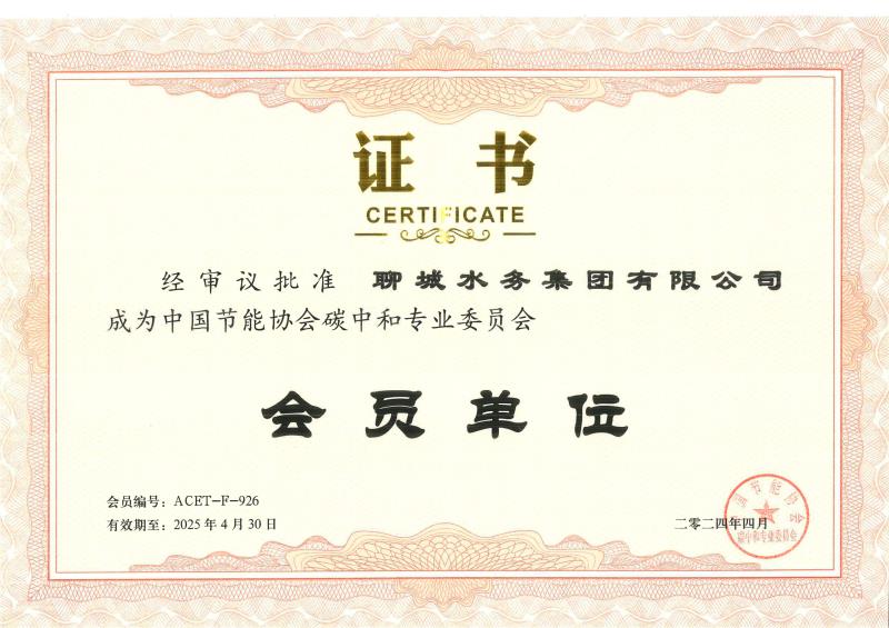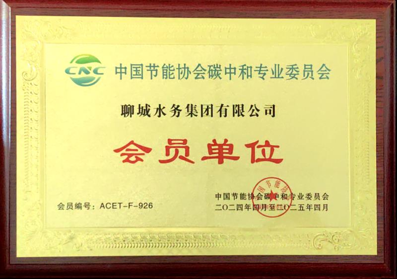 近日,经中国节能协会碳中和专业委员会审议批准,聊城水务集团有限公司以“会员单位”身份正式加入专委会。标志着水务集团在助力“双碳”目标实现方面迈出了坚实步伐。