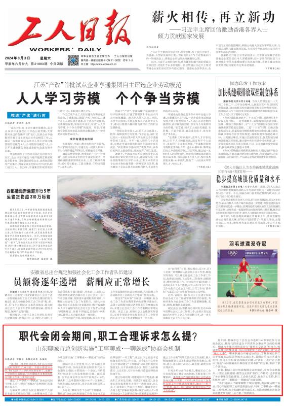 山东工人报 :聊城水务集团让职工“有地方说话”“说了不白说”