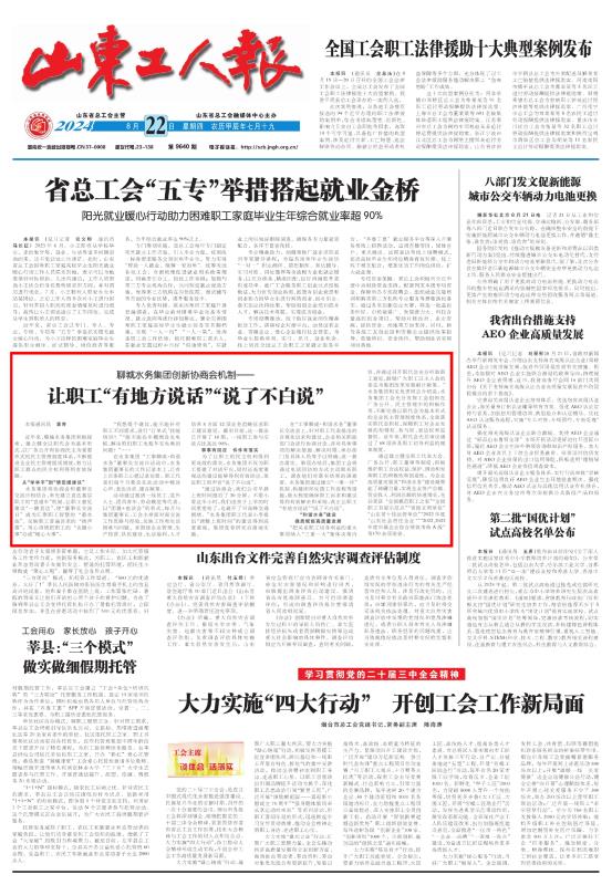 “通过协商会,我们公司早晨上班时间推后了 30 分钟。不要小看这半小时,我们送孩子上学的时间更宽裕了,也避开了早高峰交通拥堵。”水务集团职工代表小李提出“调整上班时间”的建议得到高度重视,集团党委研究后落地实施。