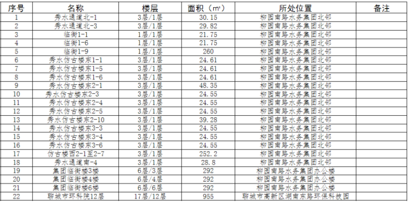 水务集团对外租赁房屋明细表